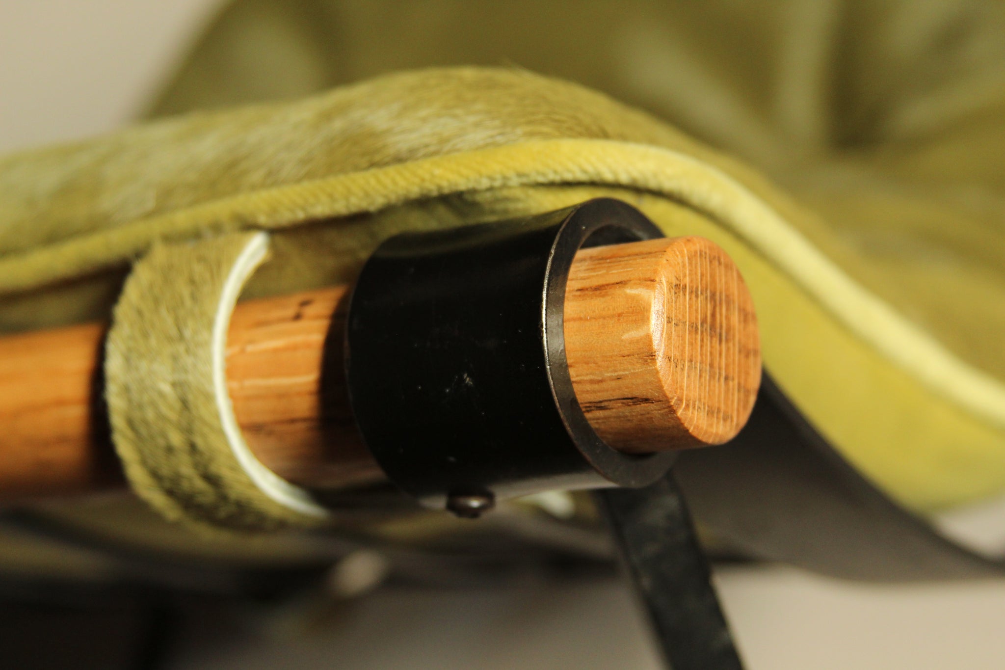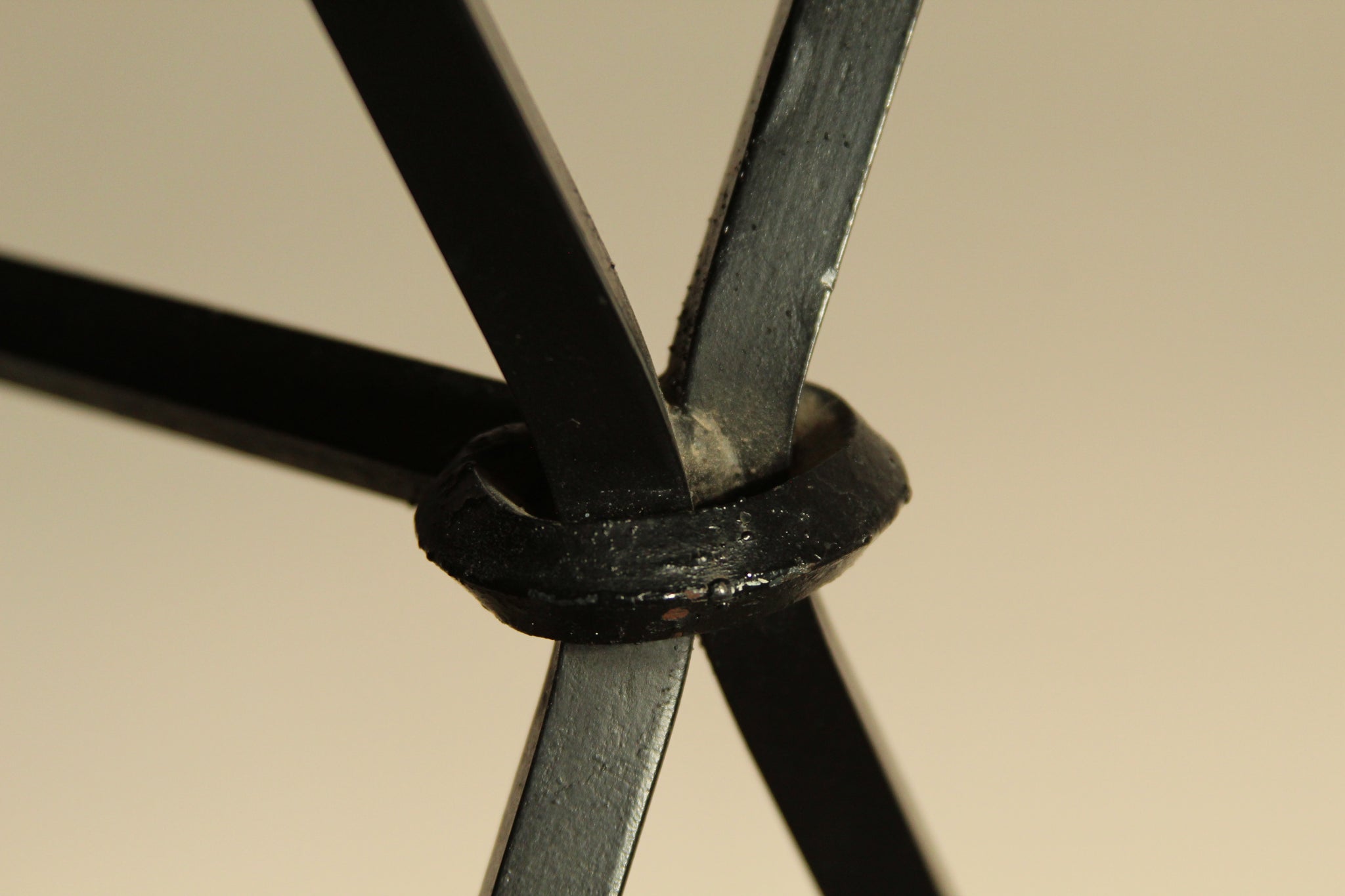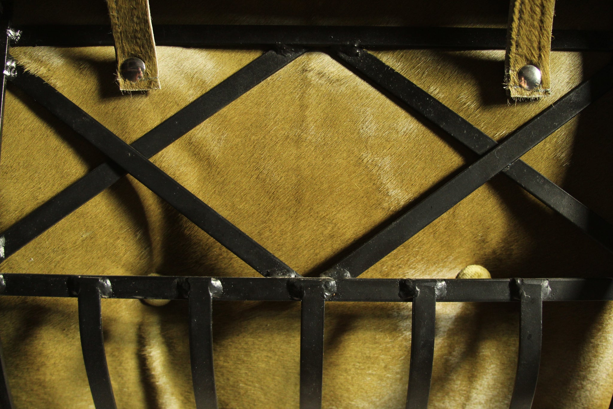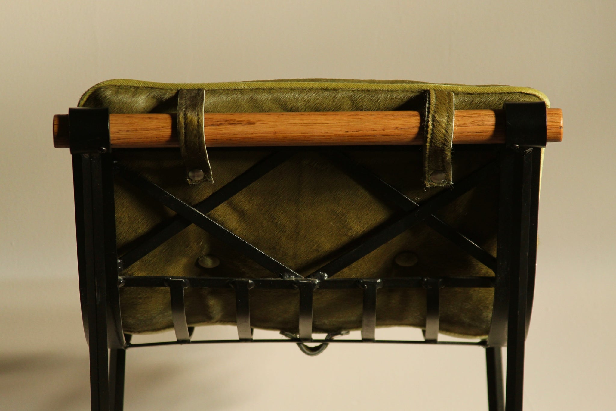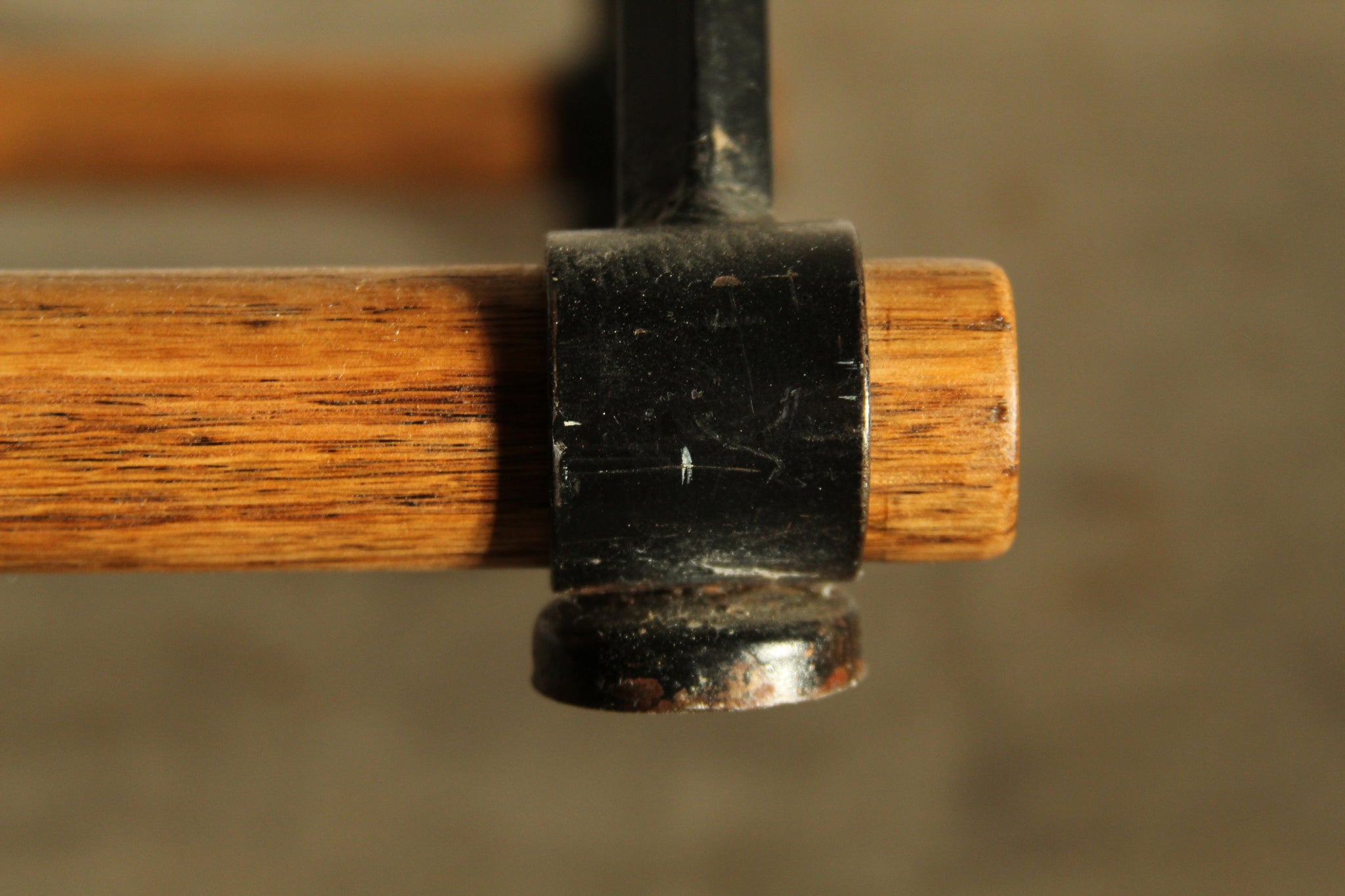 Excellent overall vintage condition with some nominal, age typical cosmetic wear to the iron. The wood and cushion are like new. Exceptionally solid and sturdy. Ready to be placed in a high end interior.